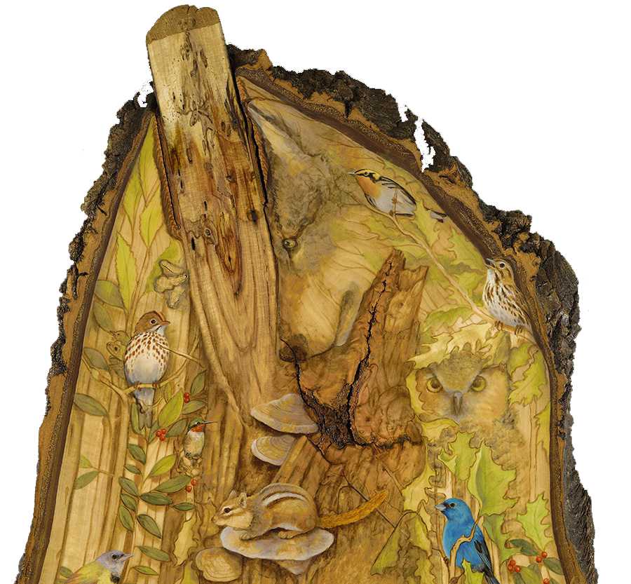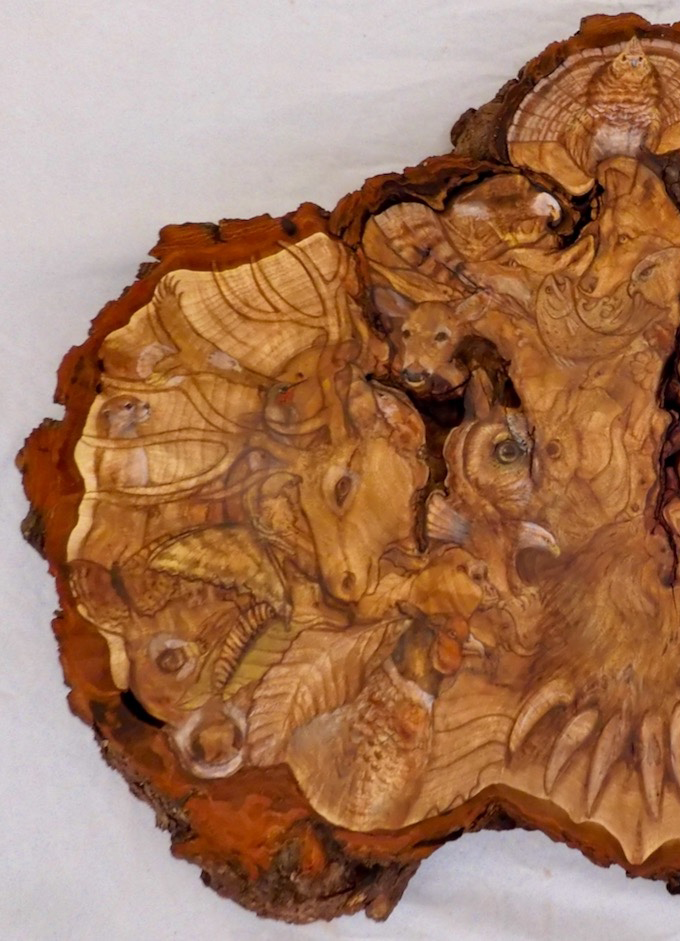 No BoundriesOriginal oil painting on 13" x 17" maple burl $2,850 Can you find all 71 creatures?